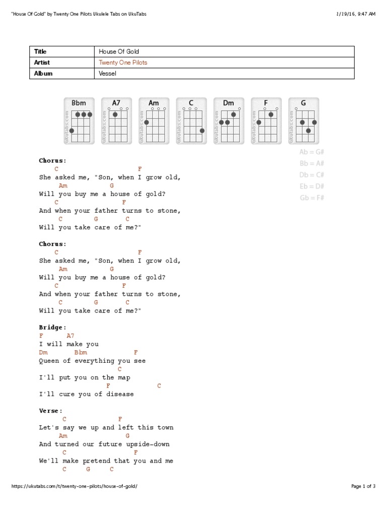 22house Of Gold 22 By Twenty One Pilots Ukulele Tabs On Ukutabs Pdf Song Recordings Recorded Music